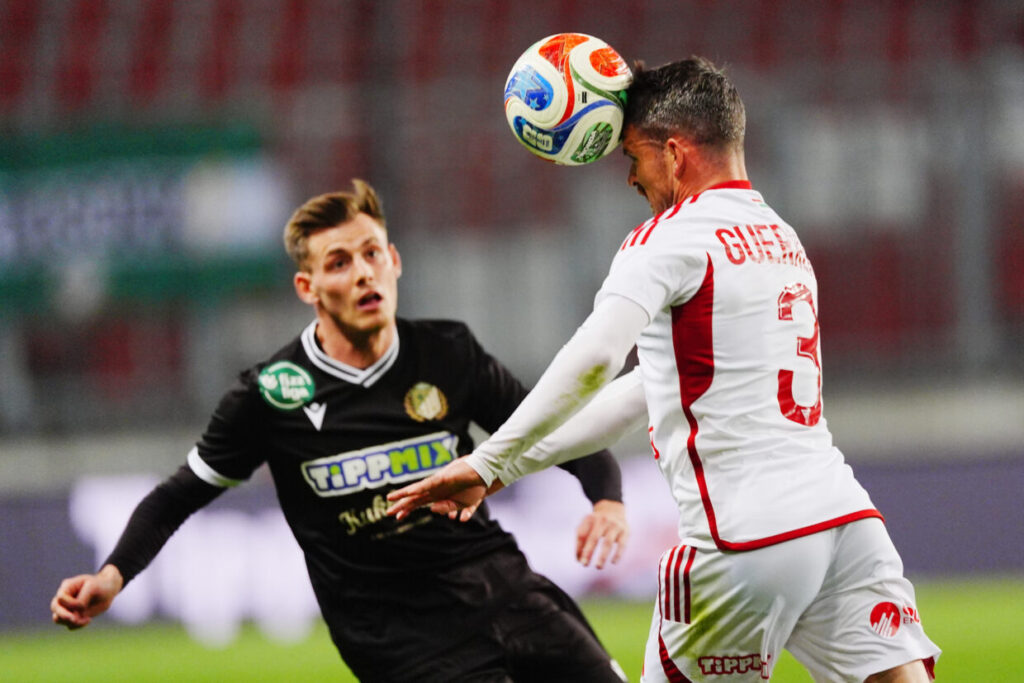 Az első negyedóra nem hozott nagyobb helyzetet, egyenlő erők küzdelmét láthattuk. Szervezetten, jól futballozott a DVSC, ha kellett, önfeláldozóan mentettek a mieink. A 32. percben egy szép támadás végén Kocsis Dominik pörgetett a kapu mellé, majd Lang Ádám távoli lövését hárította üggyel-bajjal a győri hálóőr.